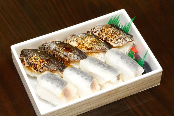 酢で締めたイワシ、シャリに、薄切り大根を「ほっかむり」のように包んだ寿司のお弁当。