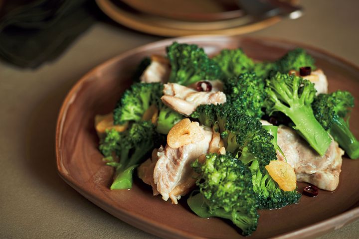 にんにくの香りを移したオイルで、鶏肉と一緒にさっと蒸し煮にすれば、調味は最小限でもうまみはしっかり。くたっとやわらかくなったブロッコリーに、思わず箸が止まらなくなる一皿です。