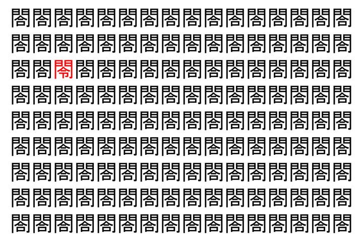 【脳トレ】「閤」の中に紛れて1つ違う文字がある!?あなたは何秒で探し出せるかな??【違う文字を探せ!】