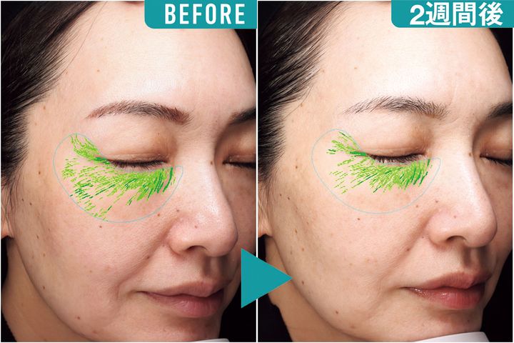 肌印象が底上げされ目の開きも改善。ハリが出たことでフェイスラインもシャープに。日中もうるおいの持続を実感。肌の内側から水分量が上がり真皮のハリ保持、微細炎症抑制が総合的に生じVISIAでは毛穴、赤みの改善が見られました。