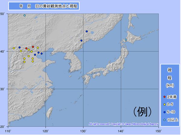 また、気象庁は黄砂を観測した地点の視程や、黄砂によってどの程度視程が悪化したかを公開しています。