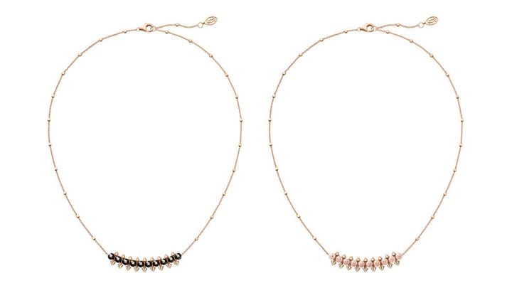(左から)ペンダント[ピンクゴールド、オニキス]¥830,500[ピンクゴールド、ピンクカルセドニー]¥957,000