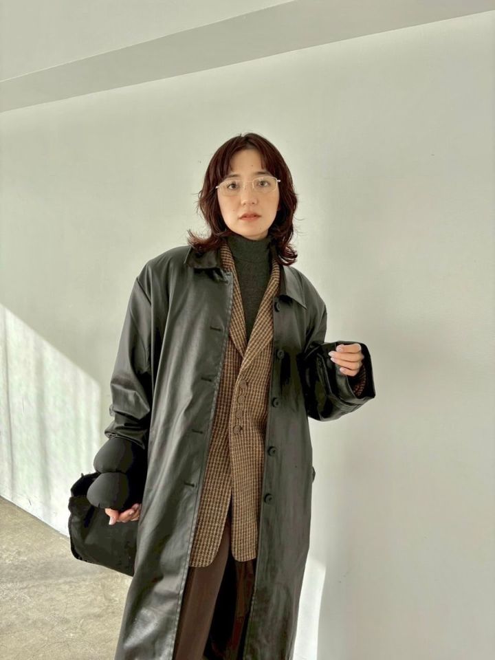 SEAのアイウェア、スタジオ ドーのアウターとパンツ、トゥデイフルの中に着たジャケットとシューズ、BIYOMAのトップス、MOON TREE PLANETのバッグは全て本人私物