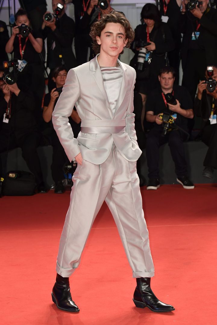 おしゃれなことでも有名で、レッドカーペットでの装いが話題になるティモシー。彼のファッションに対する注目度が一気にアップしたのは2021年、ベネチア国際映画祭で行われた主演作『キング』のプレミアにハイダー・アッカーマンのスーツを着て現れたのがきっかけ。男性が体現する新たな形のエレガンスとして注目を集めた。ティモシーはそれ以来、アッカーマンのデザインするバックレスのジャンプスーツやスウェットパンツなどでレッドカーペットを華やかに彩ってきた。
