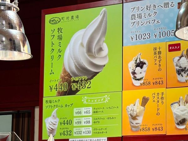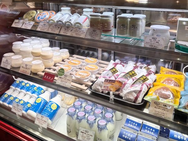 イートインの場合、「牧場ミルクソフトクリーム」はワッフルコーン付きで440円、「特撰牛乳」(180m・小びん)は204円!想像より手に取りやすい値段がうれしいですよね。あれこれ目移りしてしまいます。