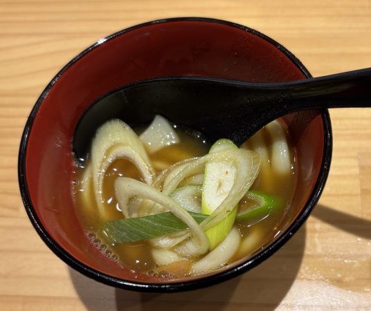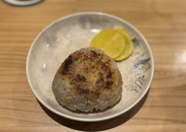 炭水化物が食べたくなり、“しめ”は焼きおにぎりとカレーうどんを注文。お米は、創業150年のお米屋さん「米庄」のつや姫です。