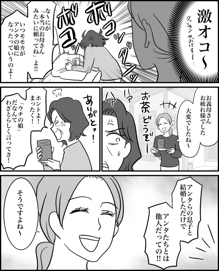 義母はモモカちゃんのご両親の言葉に、怒り心頭の様子でした。