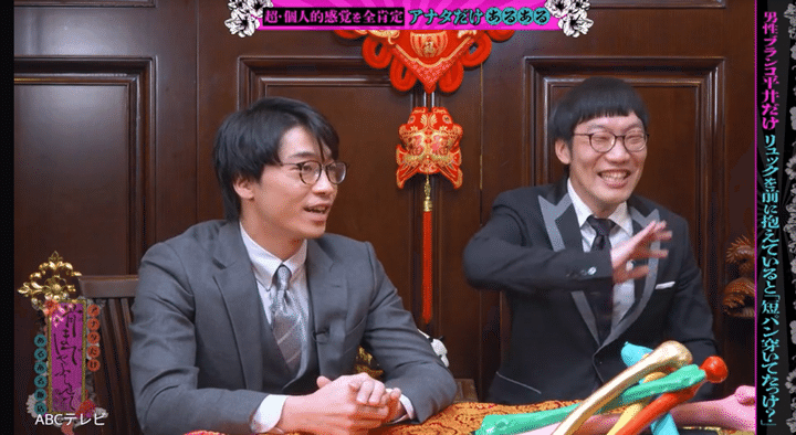 「マジでお前だけあるある!」と、共演者一同が平井に共感できない中で、「うちの相方が子ども生まれてから……」と語りだしたのは周平魂だ。周平魂いわく相方・たかのりは、「抱っこ紐で赤ちゃんを抱えながらパンツで出かけてしまった」ことがあるという。さらに周平魂は、「(家の前の公園で)なんかえらい見られてんな~って、相方的にはちょっと嬉しかったらしくて。顔察してもらえたのかなって。パッと(下を)見たらパンツっていう」と明かした。