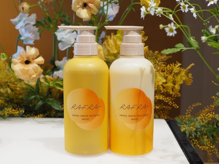 今回、新たに誕生する「ラフラ アロマセラムシャンプー モイスト」と「ラフラ アロマセラムトリートメント モイスト」は、これまでに培ってきた天然由来成分、アロマ精油の技術を生かした美容液発想のもの。