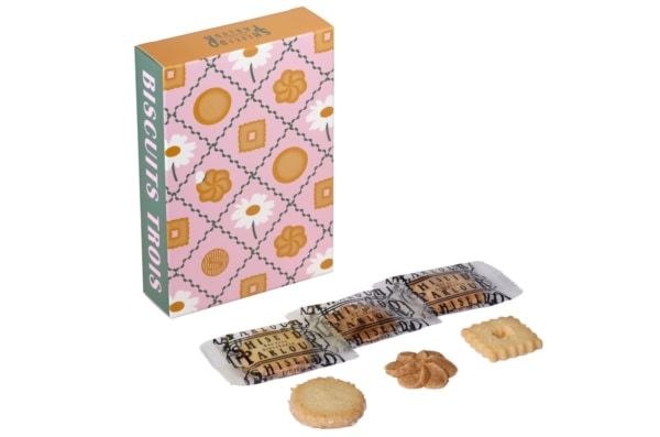 ノスタルジックな印象のデザインには、ふっと笑みがこぼれる遊び心も。「ビスキュイ トロワ」には蝶々が、「マカロンフレーズ」にはうさぎが、それぞれパッケージのどこかに描かれています。