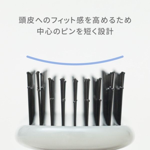 頭の丸みに沿いやすいよう 中央5列のピンを短めに設計し心地よいフィット感を実現。