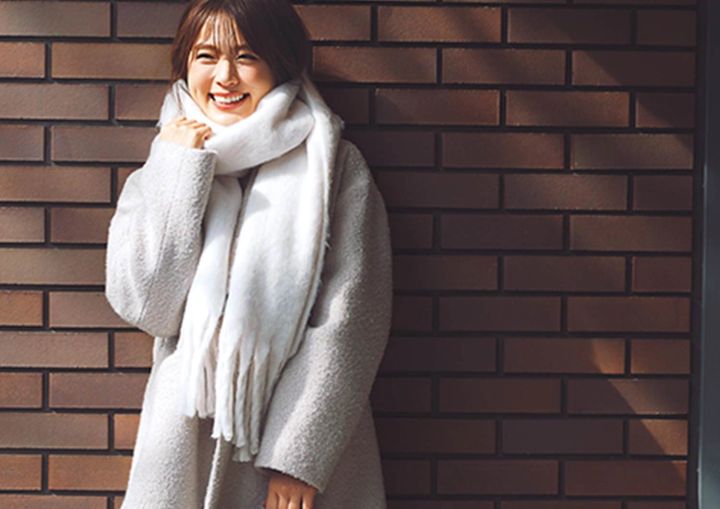 コート¥57,200/ルーニィ ニット¥8,910/WILLSELECTION ルミネエスト新宿店 スカート¥12,100/オペーク ドット クリップ マフラー¥1,099/GRL バッグ¥6,490/カシュカシュ(アンビリオン) ブーツ¥42,900/ダイアナ(ダイアナ 銀座本店)