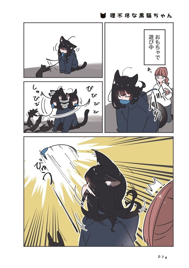 黒猫姉妹のクロとマメは今日も自由気まま。飼い主が「大きく育ってほしい」と願った翌日、なぜかクロが女の子の姿に!? おもちゃで一緒に遊んだり、仕事中になでなでを要求されたり、遊んでアピールに気づけず怒られたり――。気まぐれな2匹に振り回される飼い主の日常を描いた、温かくて優しいもふかわコミック『うちの黒猫、おんなのこ きまぐれ姉妹のクロとマメ』をお楽しみください!