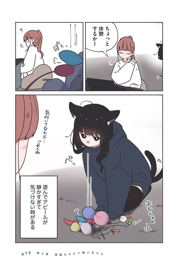 3. 「こね」職人たちの朝は早い。朝起きると、よく使うクッションを猫がこねていて?/うちの黒猫、おんなのこ⑨