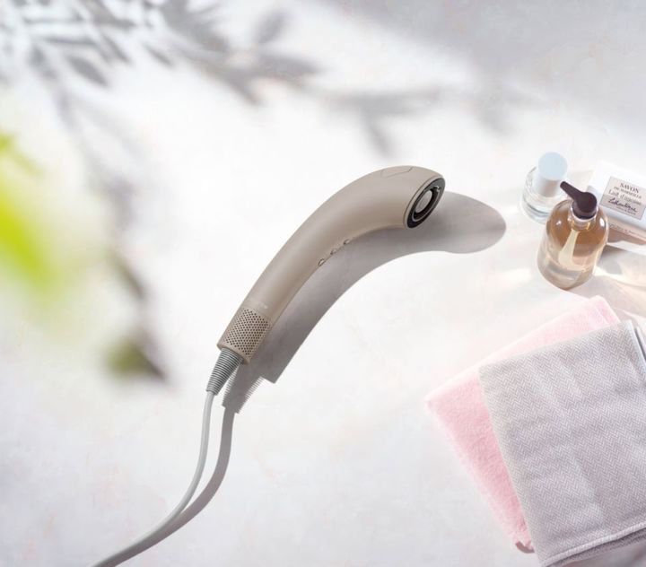 ヘッドトップの噴き出し口から、ナノ化された美容液がミストとして噴出。専用美容液にはヒアルロン酸、浸透型ケラチン、浸透型シルクなどが配合されており、髪の毛の約1/80サイズにナノ化され、髪の深層部へ浸透。この結果、髪本来のうるおいを取り戻し、毛先までしっとり。 また、優れた熱伝導性と電気伝導性を兼ね備えた「グラフェン」と呼ばれる遠赤外線と、プラスとマイナスの両方を備えた独自のイオンテクノロジーも採用し、うねりやパサつきをおさえ、美しい仕上がりに。まさに、乾かしながら、トリートメントケアまで完了しちゃうというわけです。