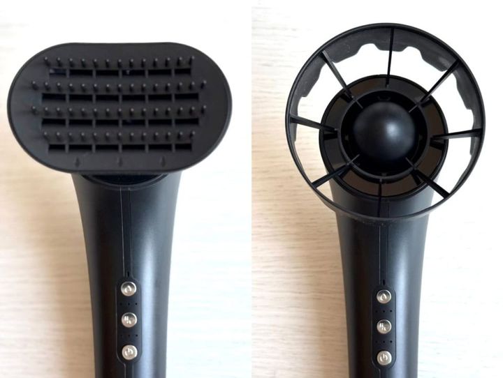 2種のアタッチメントが付属。右:「ブースト アタッチメント」風量を最大化したいときに。右:「ストレート アタッチメント」コームで髪を梳かしながら水分を飛ばすことが可能。