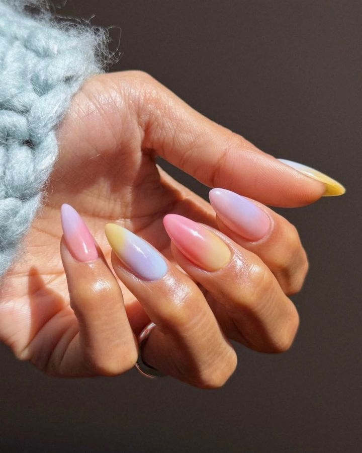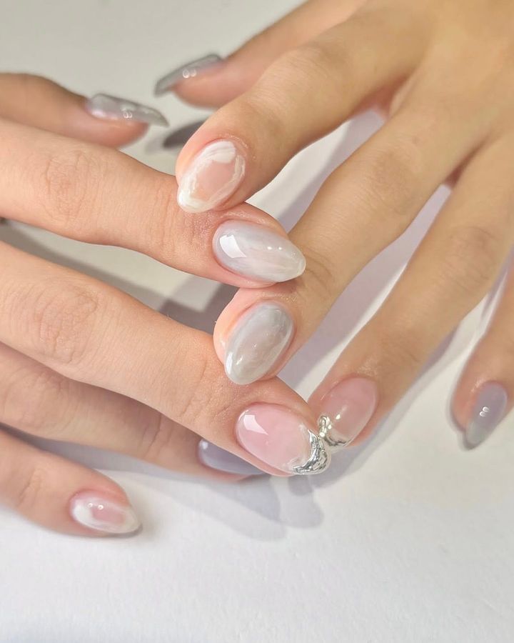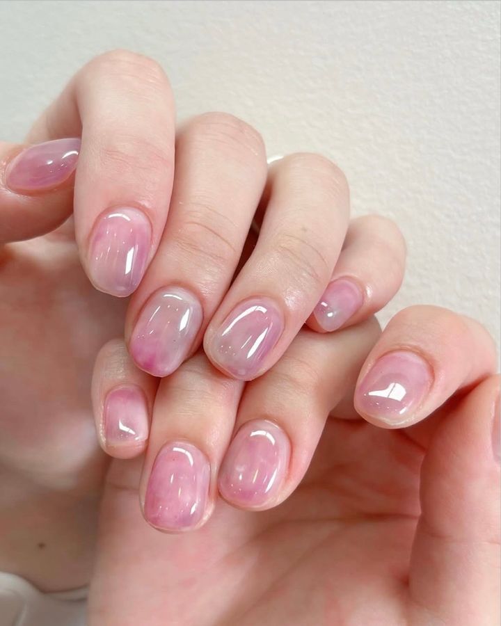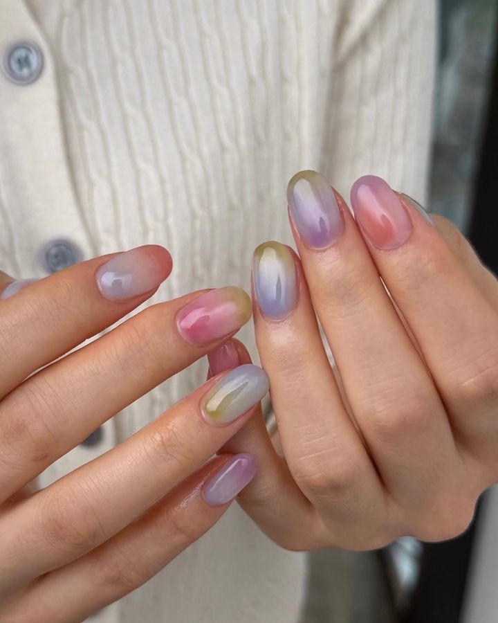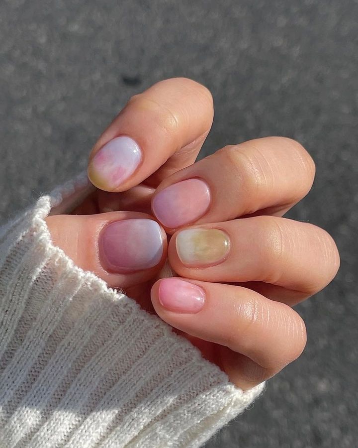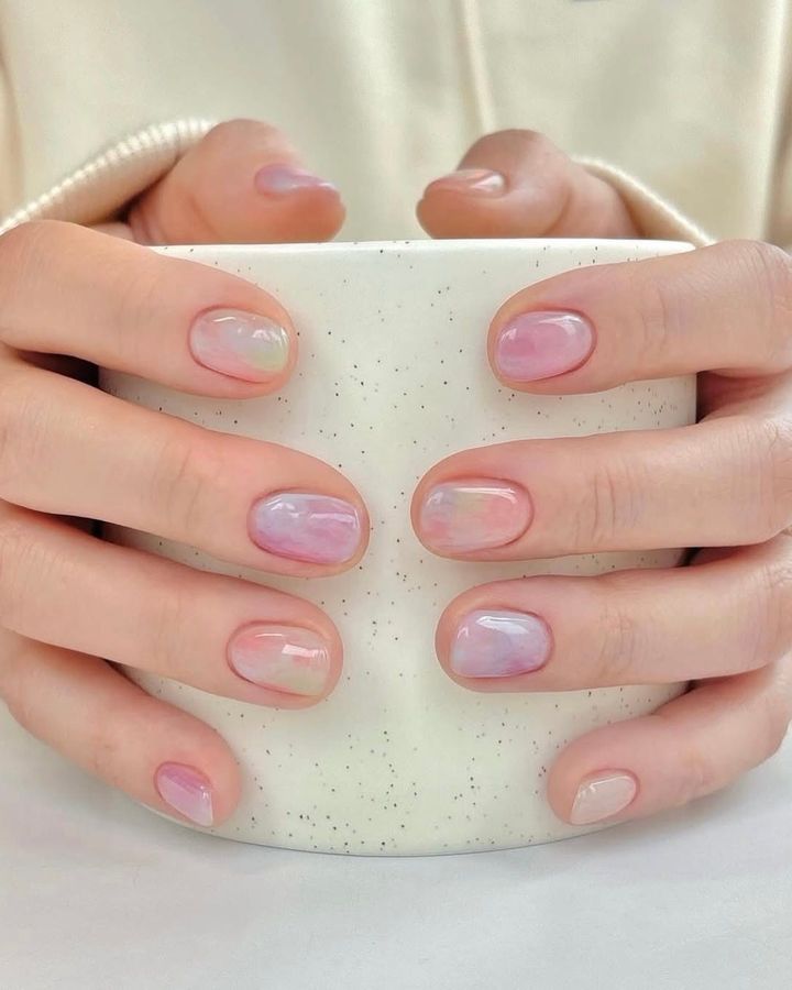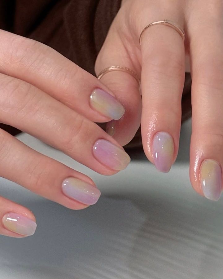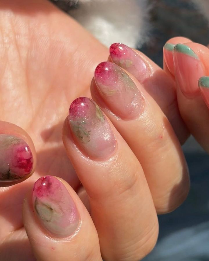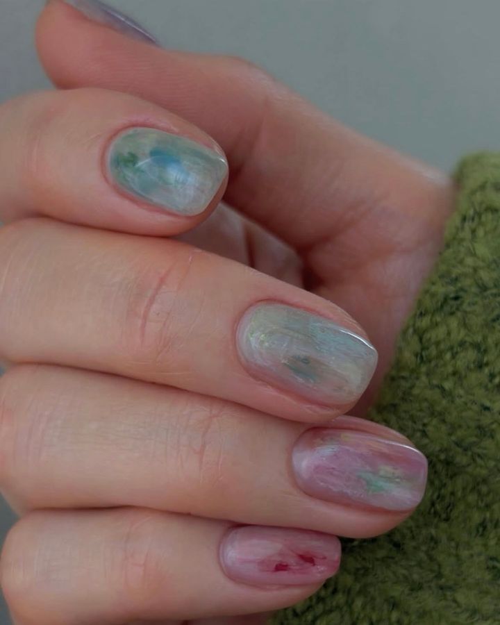 繊細な色同士が混ざりあって生まれる、美しい水彩風ネイルをピックアップ。