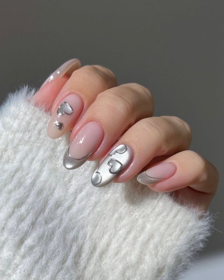 依然人気のチークネイルにもハートを追加。パウダーで仕上げたメタリックなラインは、細くても存在感ばっちり。