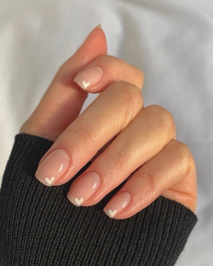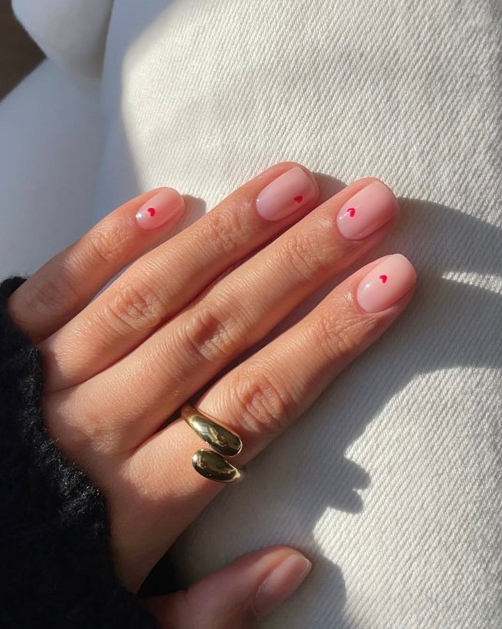 クリーンネイルにマイクロサイズのハートをトッピング。ミニマリストにおすすめ。