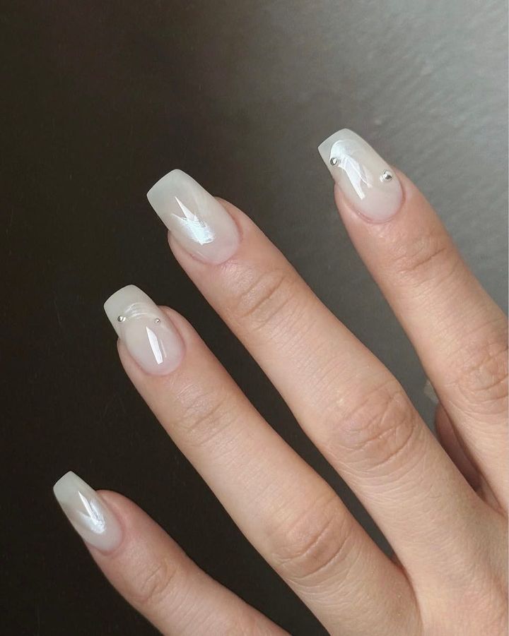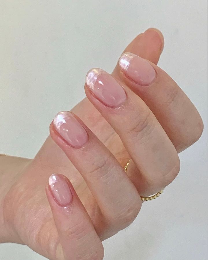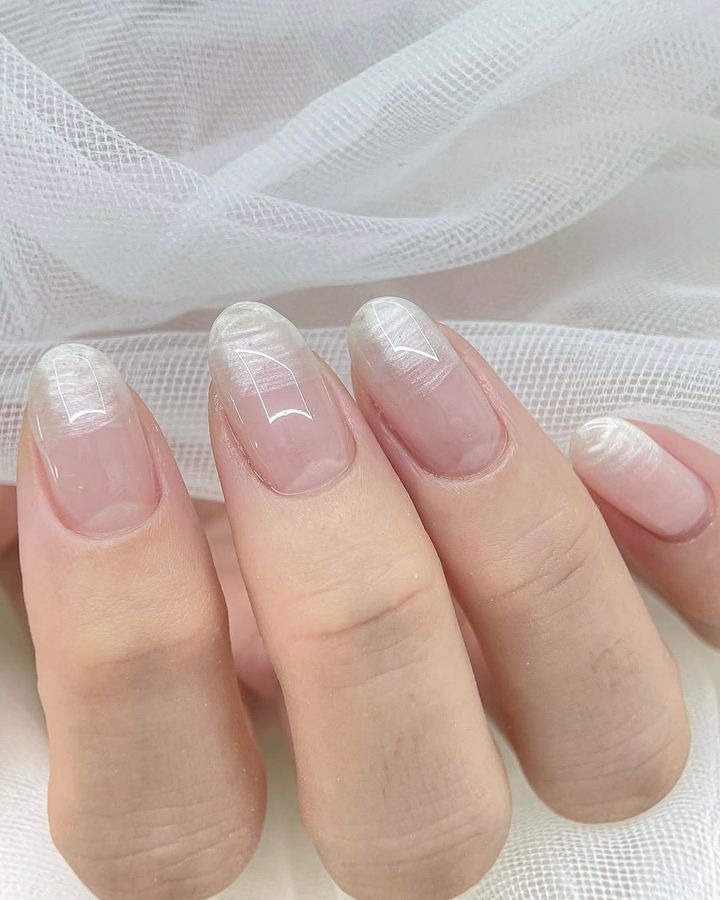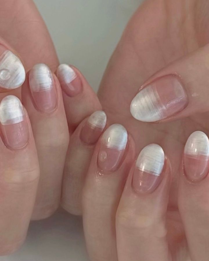 清潔感を重視したクリーン・ガールの台頭も相まって、クロームネイルより粒子が細かく、ギラギラ感を抑えたサテンの質感に移行する人が続出中。