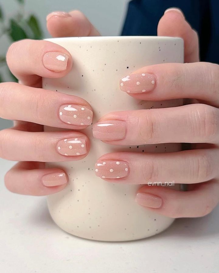 ヌードベージュにさりげなく重ねたピンクの水玉が可愛い。