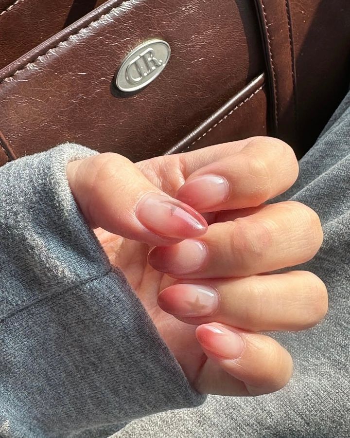 爪の先端にローズカラーをにじませたグラデーションネイル。スターで遊びを効かせて。
