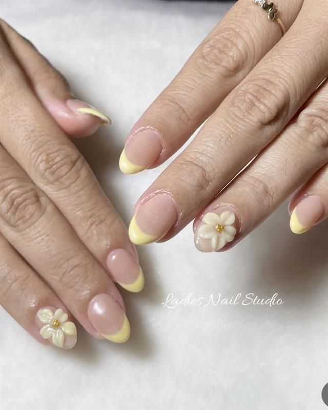華やかな3Dアートに、柔らかい印象のバナナカラーをフレンチでプラス。