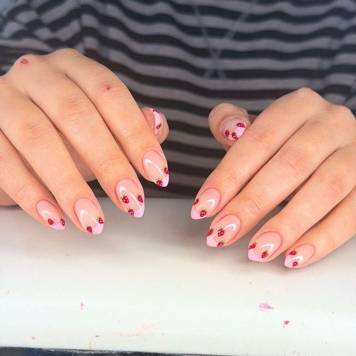 キュートなイチゴがアクセントのネイルは、華やかかつ春らしい!