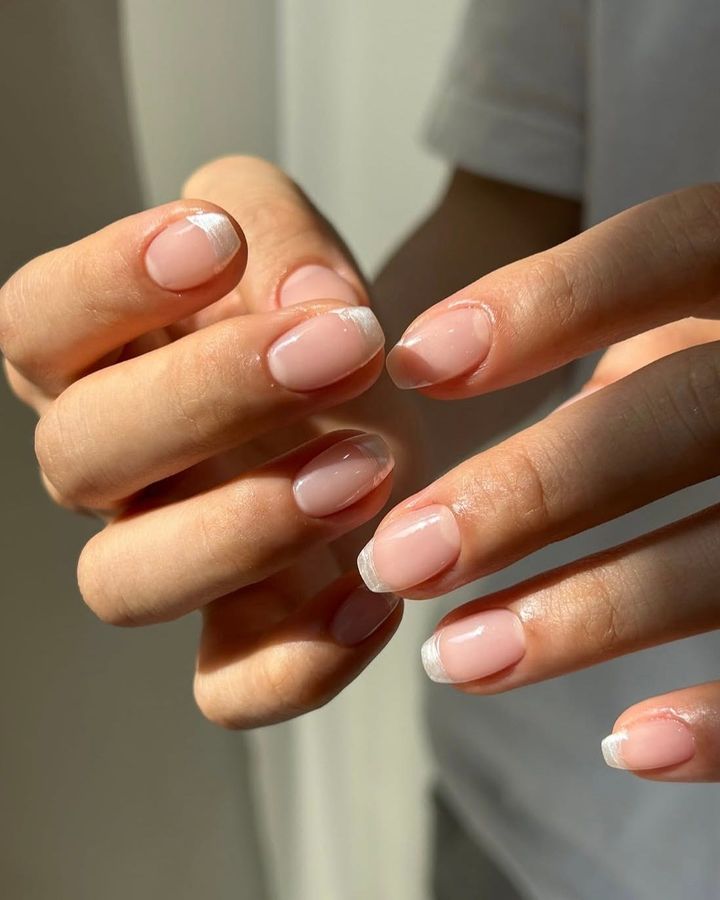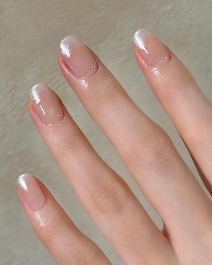 サテンネイルで特に人気なのがフレンチ系のデザイン。透明感のあるベースに、サテンの微細な質感が重なる様子が清楚で素敵。
