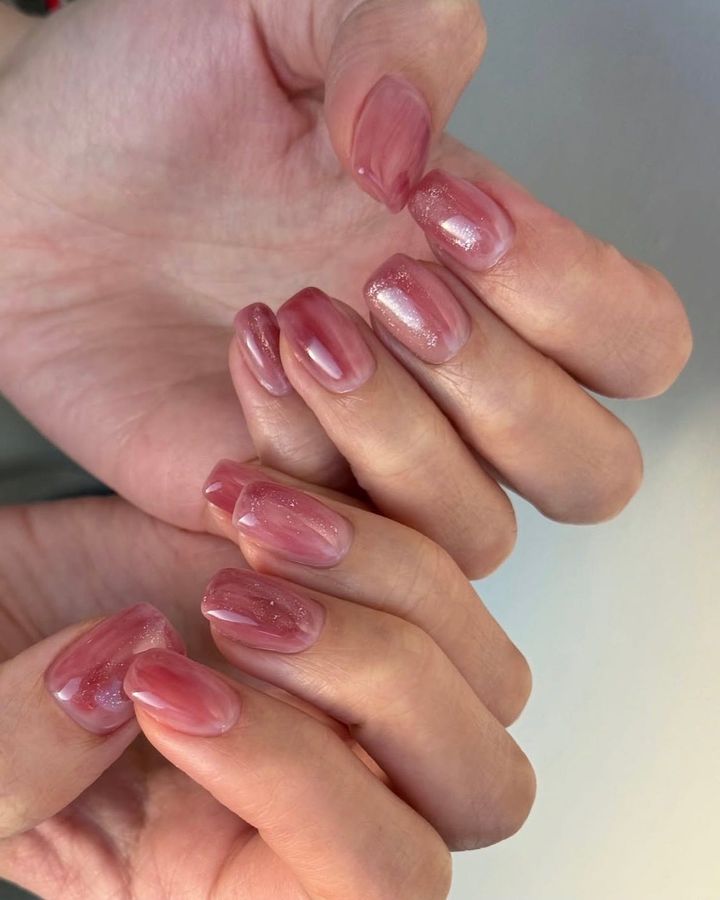 ドライフラワーのようなくすみローズのマーブルに、繊細なラメで気品をレイヤード。