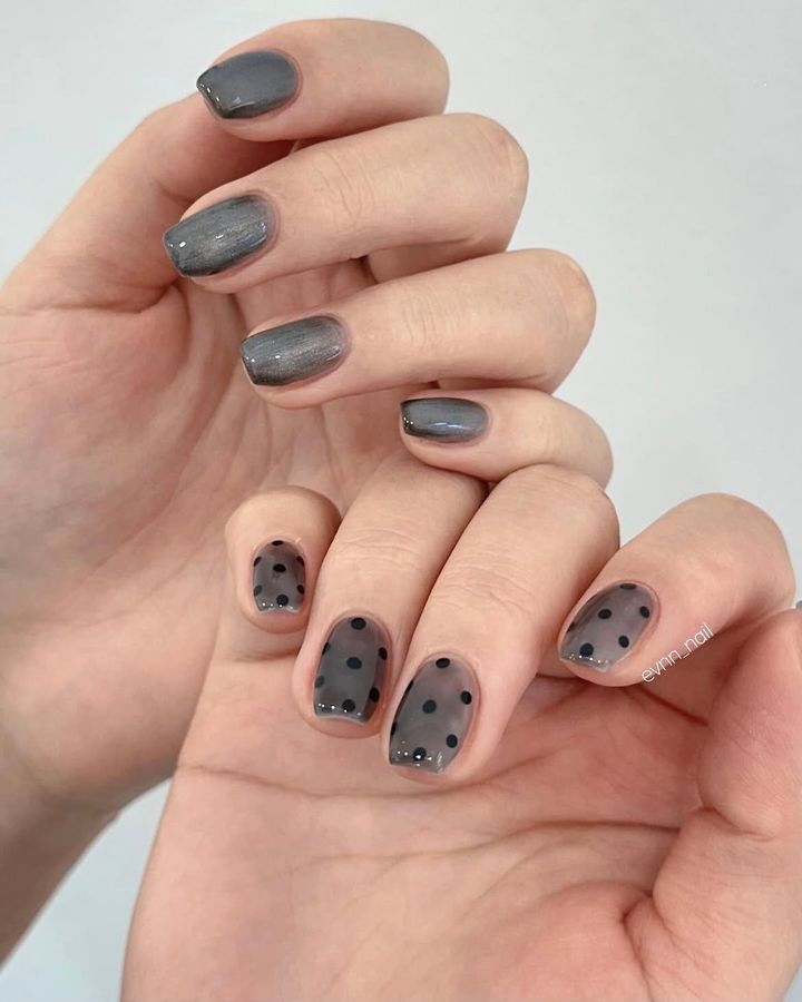 トレンドのシアータイツネイルも、ドット柄が高支持率。