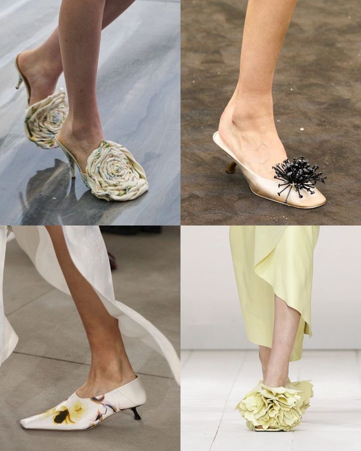 絵画やアートピースのような、心躍る「フラワーモチーフ」のシューズたち。今シーズンは、かわいらしい小花柄ではなく、一輪の花を立体的に表現した大胆なデザインが主流に。