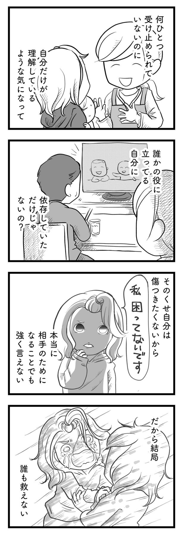 小5の夏、親友はある日突然、母親と姿を消した。20年後、民生委員となったカヨコの目の前に現れたのは、あの日消えた親友によく似た18歳の母親・アカネだった。親戚も友達もいない土地で、初めての子育てに苦労しているように見えたアカネ。その境遇が親友と重なり、カヨコはアカネの手助けをしたいと思うのだが…。大人になった自分は、親友の生き写しであるかのような彼女に手を差し伸べることができるだろうか――。『その叫びは聞こえていたのに 消えた母子をめぐる物語』は、無縁社会に落ちてしまった若い母と子供を葛藤しながら見つめる、渾身のセミフィクションコミックエッセイです。