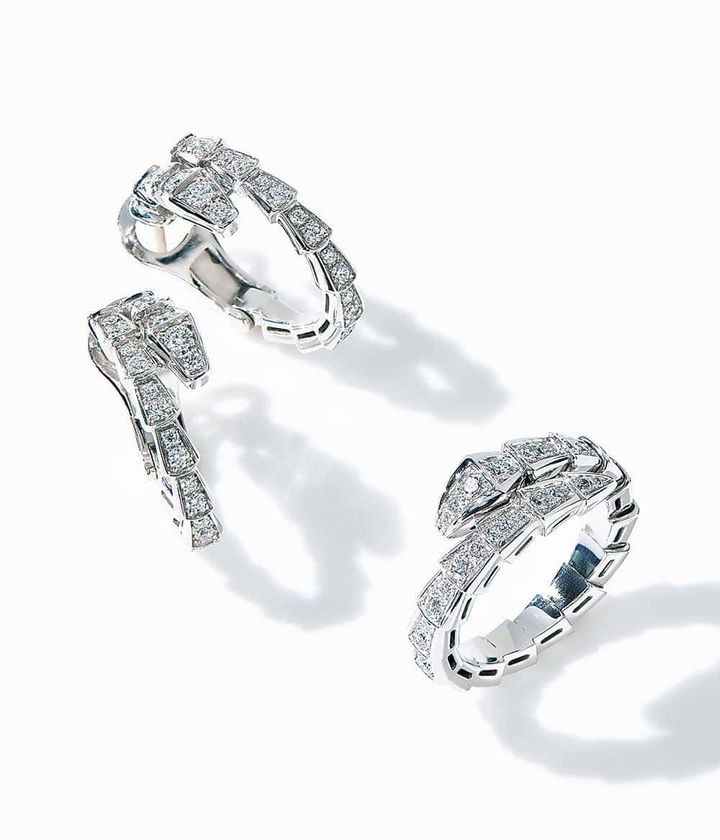 リング「セルペンティ ヴァイパー」〈WG×DIA〉¥1,727,000ピアス「セルペンティ ヴァイパー〈WG×DIA〉¥1,947,000(ともにブルガリ/ブルガリ・ジャパン)