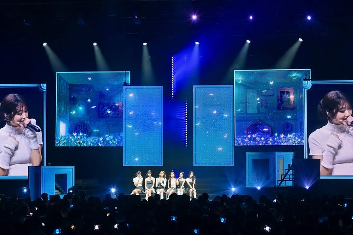 MAIが「ファンコンのために特別にもう一曲用意しました。私たちの曲ではないです。何の曲でしょう!?」と期待を煽ると、HANA「Blue Jeans」のカバーパフォーマンスがスタート。6人の美しいハーモニーが響き渡り、パワフルな歌声を誇るCHOI JUNG EUNによるボーカルでもnayaを魅了。