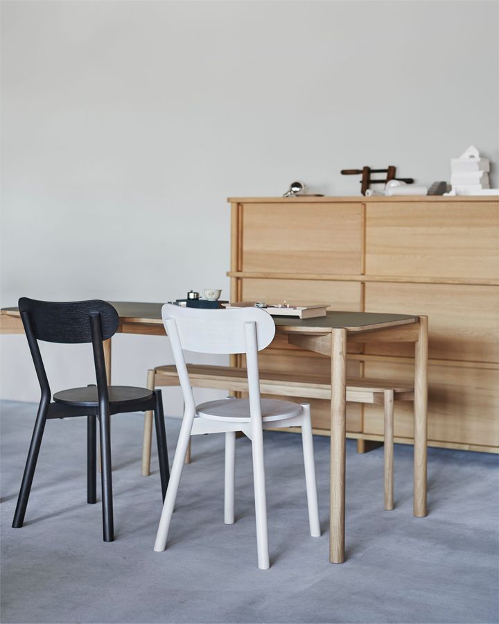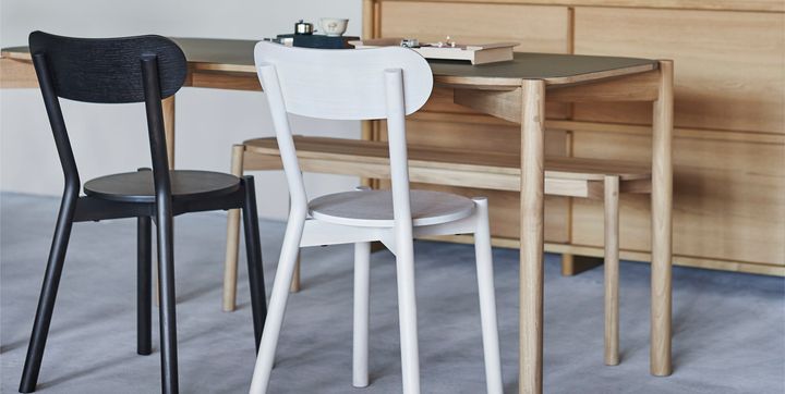 日本の木製家具メーカーとして歴史の長い「カリモク家具」が2009年に設立した「カリモクニュースタンダード」は、あまり有効活用がなされていなかった広葉樹を使用した、デザイン性の高い製品を展開するブランド。スイスを拠点に活動するデザイン事務所 BIG-GAME(ビッグゲーム)が手掛けた"キャストールチェア"は、伝統的なカフェチェアから着想を得ており、ミニマルで素材感を引き立てるデザインが特徴だ。国産のナラ材を使用し、塗装はあえて木目がうっすらと透けるように仕上げられている。
