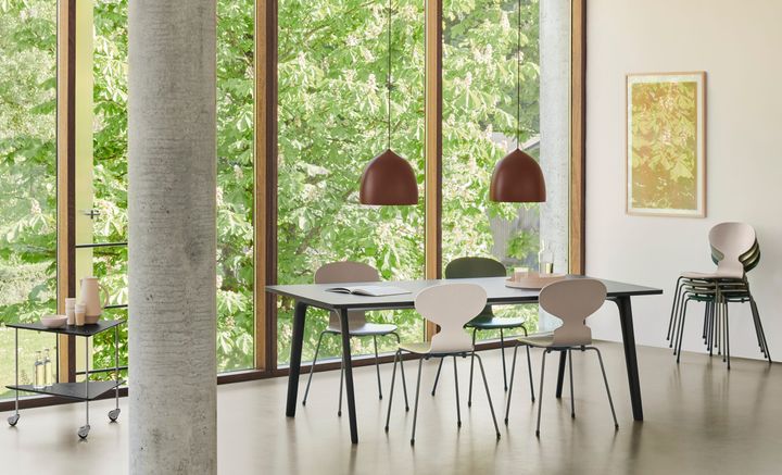 「フリッツ・ハンセン」の中でも、"セブンチェア"と並ぶ定番で、世界中で愛されている"アリンコチェア"。数多くの名作椅子を生み出してきたデンマークの巨匠デザイナー、アルネ・ヤコブセンによるデザインだ。1952年に誕生したとは思えないモダンでミニマルなフォルムで、どんな空間にも馴染む汎用性の高い1脚。オリジナルは3本脚だが、1971年より安定感のある4本脚タイプも定番化された。座面の仕様の種類はさまざまだが、カラードアッシュ仕上げなど、5万円代で手に入る組み合わせが多数あるので狙っていた人は今が購入のタイミング!