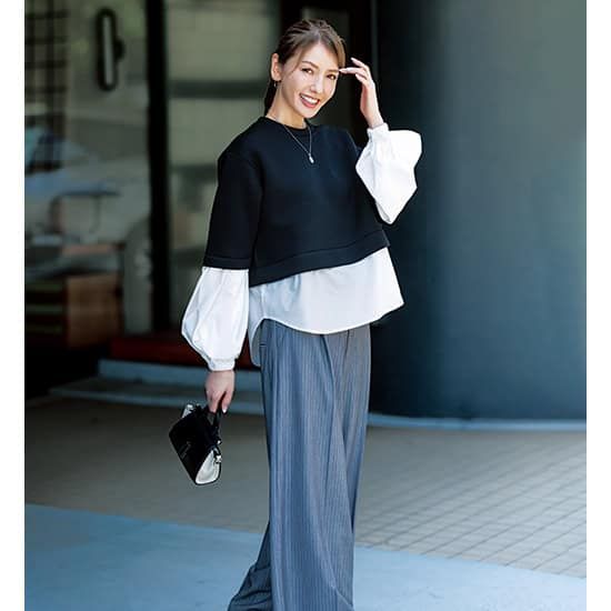 ②レイヤード風でコーデいらず!いつものパンツコーデが華やぐ「ドッキングプルオーバー」