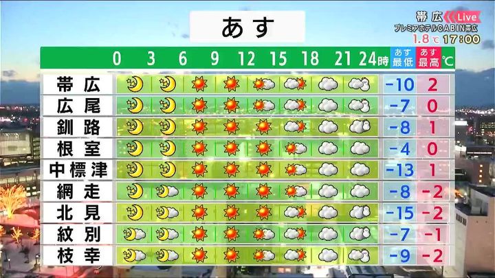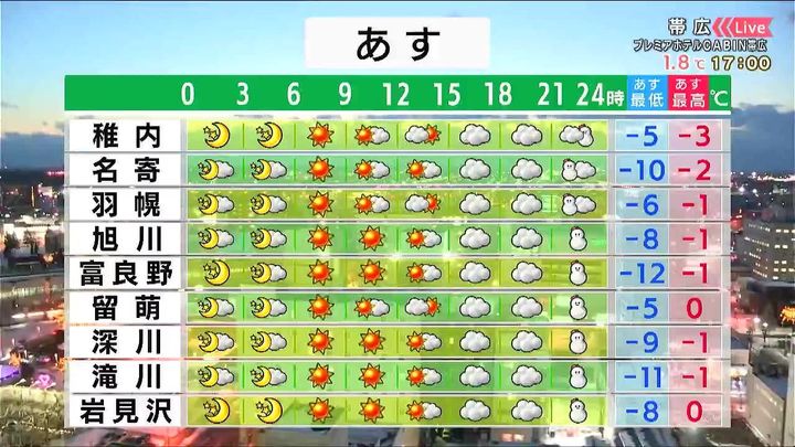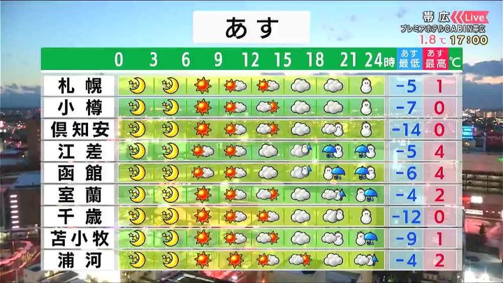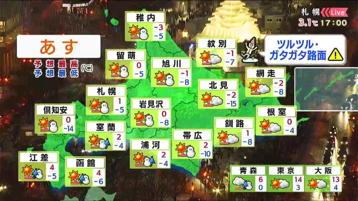 ・あすの札幌の朝昼晩の天気