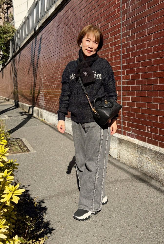 【60代お手本スナップ】「冬の黒」を品よく華やかにするには?「ルイ・ヴィトン」の小物使いが秀逸な大人カジュアルスタイル