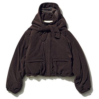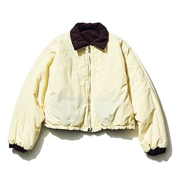 「えりをおろせばレトロなムード、立てればハンサム、付属のフードストールをつけてカジュアルに、色を変えて気分転換。印象チェンジが簡単にできる、類を見ないアレンジ力に脱帽!」(スタイリスト・船戸さん) えりの先端にボタンがあり、えりの立ち上がりをよく。 ダウンジャケット/KBF(KBF ルミネエスト新宿店)