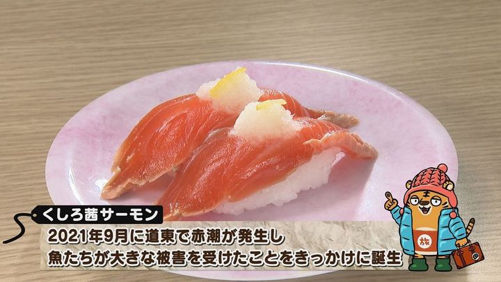 サーモンの色を釧路の美しい夕日の色にたとえて、「くしろ茜サーモン」と名づけられたぞ~。