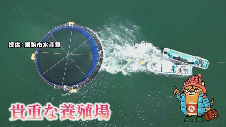 サーモンの養殖には低い水温が適していて、夏でも水温が20℃を超えることが少ない釧路は貴重な養殖場なんだ~。