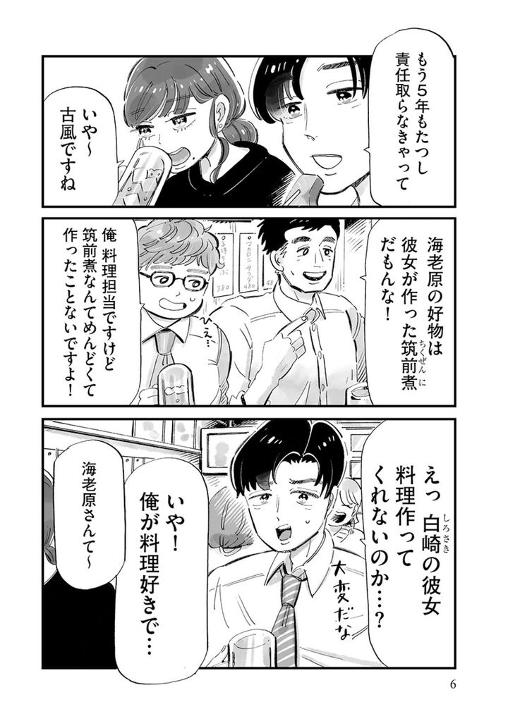 そうきたか……後輩のイヤミに気づかない勝男の返答に閉口