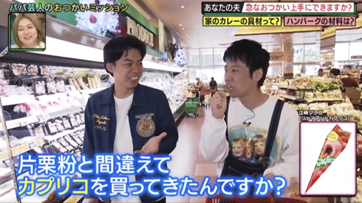 3. 「片栗粉と間違えてカプリコを買ってきて…」結婚10年目のパパ芸人が奥さんの代わりにおつかいミッション!