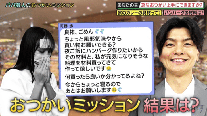 「片栗粉と間違えてカプリコを買ってきて…」結婚10年目のパパ芸人が奥さんの代わりにおつかいミッション!