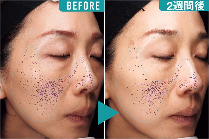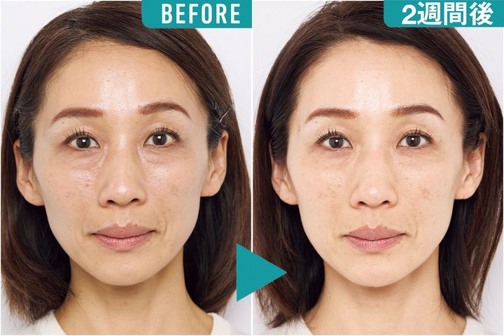 全体的なくすみが消え血色感のある肌に。目の下のシワや膨らみが改善しほうれい線も浅く。角層水分量の増加、皮脂バランスの正常化、真皮のハリの向上など総合的に改善したことでVISIAでは毛穴のスコアが向上しました。