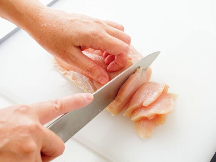 鶏胸肉は薄切りにすると火の通りが早くなり、片栗粉をまぶすことでしっとり柔らかく仕上がります。