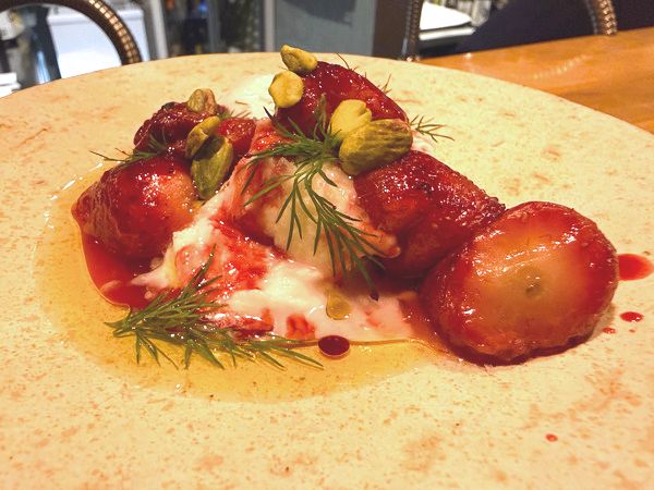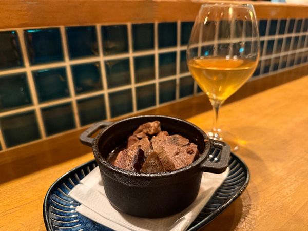 2杯目のオレンジワインと一緒にいただいたのは、牛タンの赤ワイン味噌煮込み。