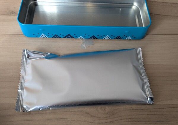 濃厚なカカオ感の強いミルクチョコレートの板チョコ入りです。筆記用具や小物、コーヒーフィルターを入れるなど、さまざまな用途に活躍します。